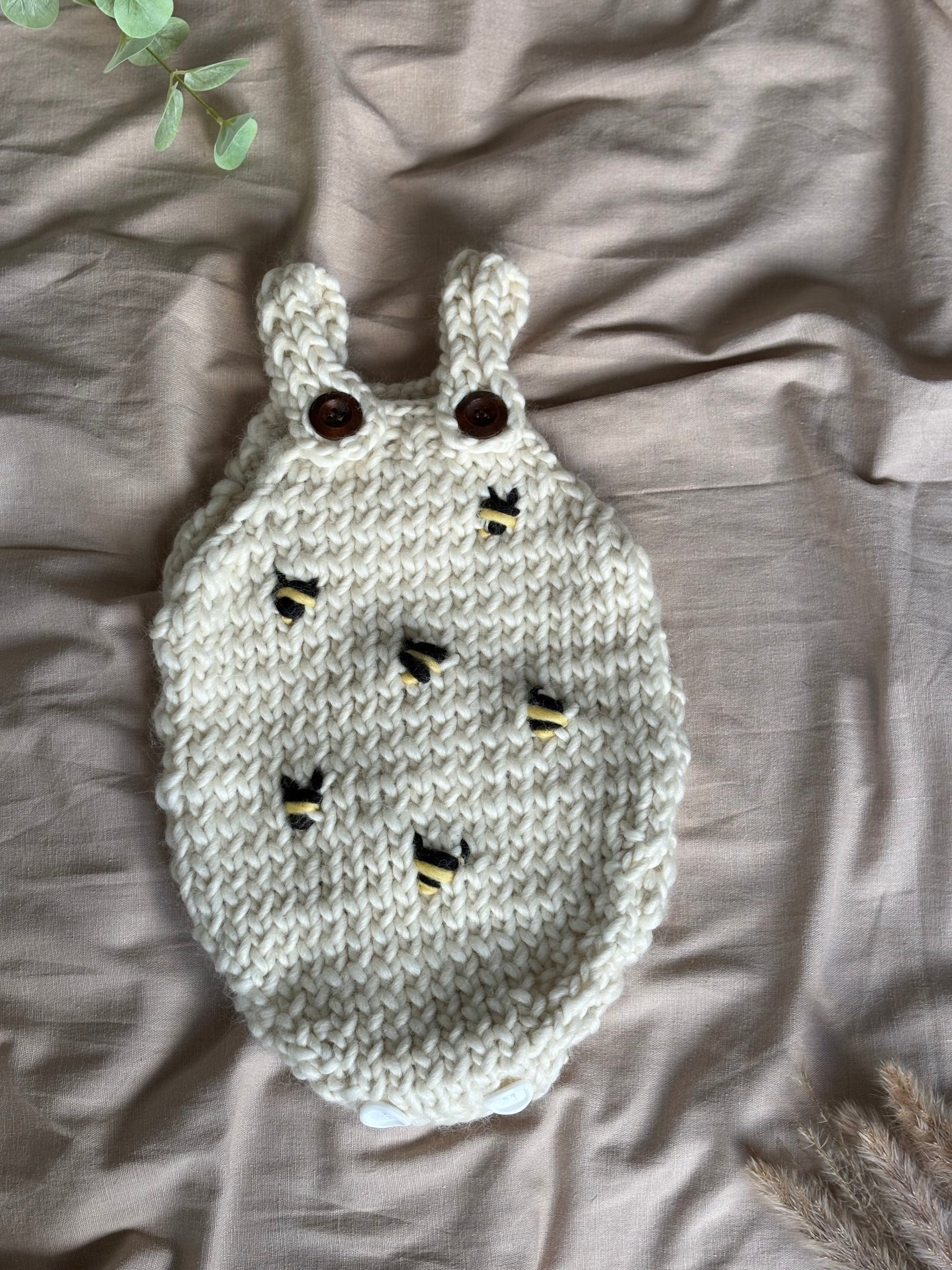 The playful bee motif adds a charming detail, making this piece both unique and versatile.