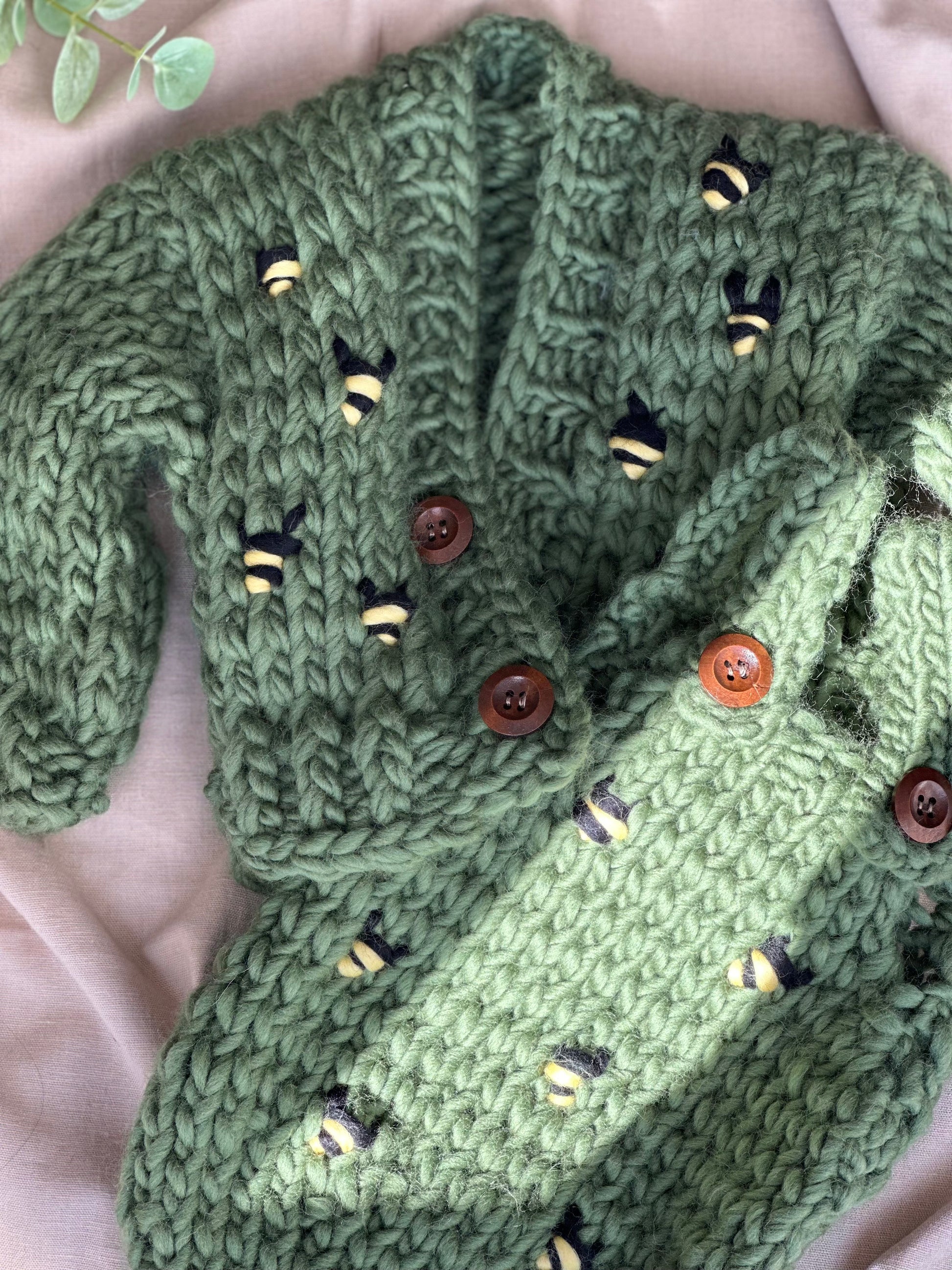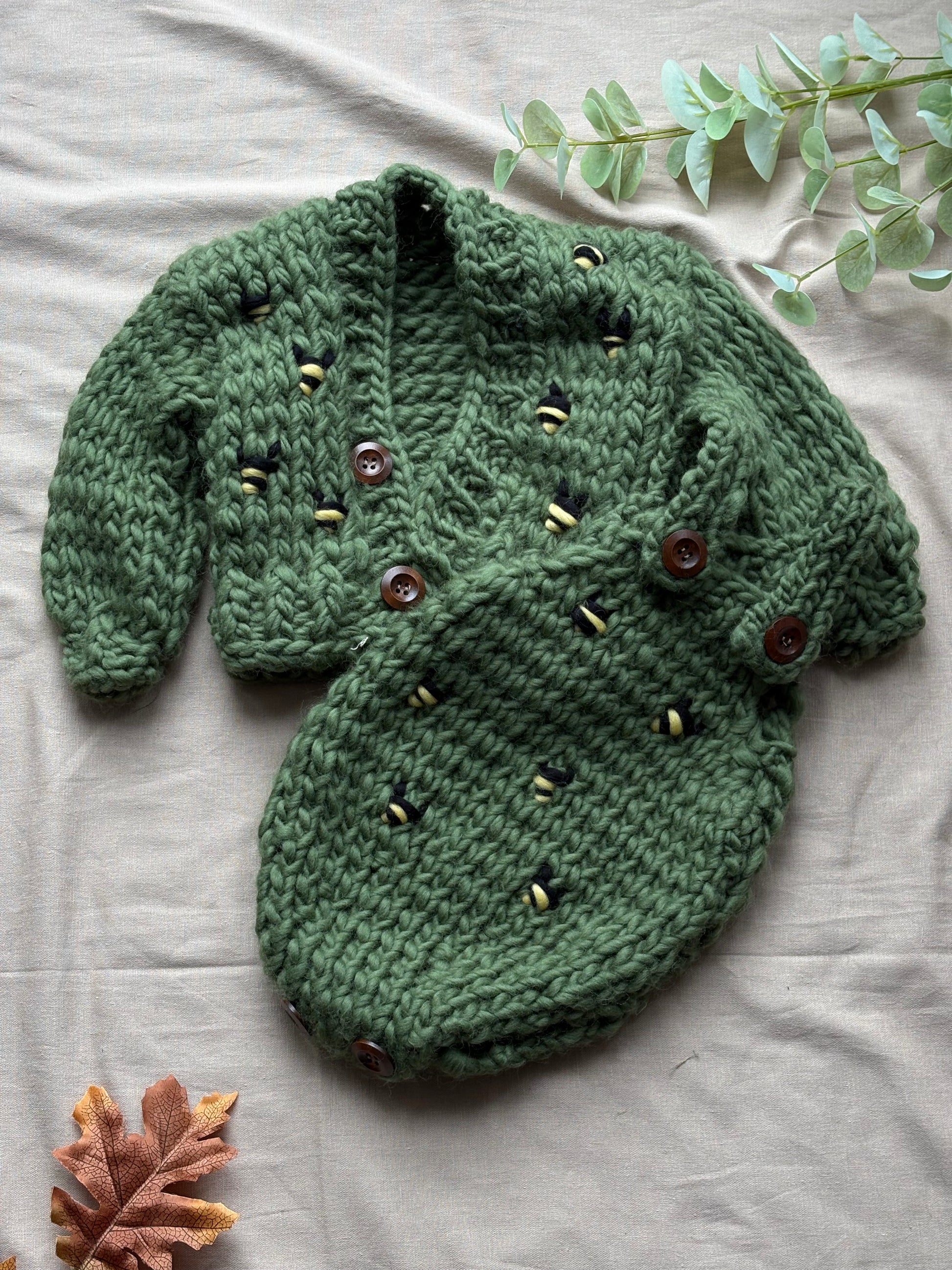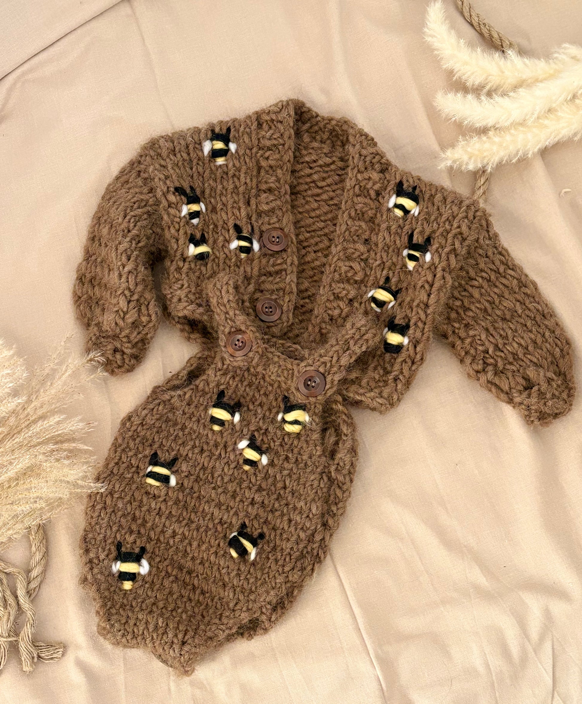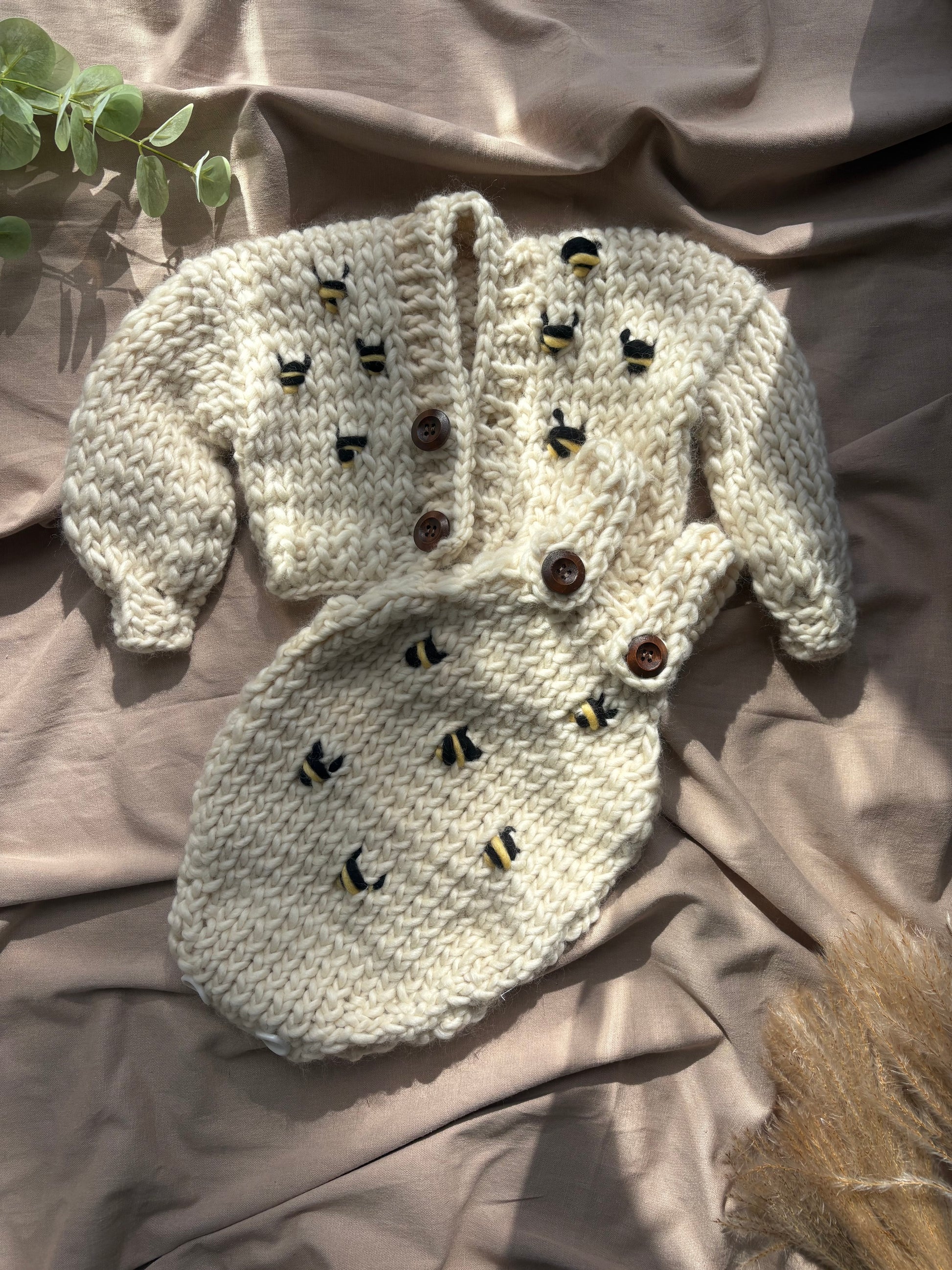 Baby Bee Set – Hand-Knitted Merino Wool sweater & Bodysuit