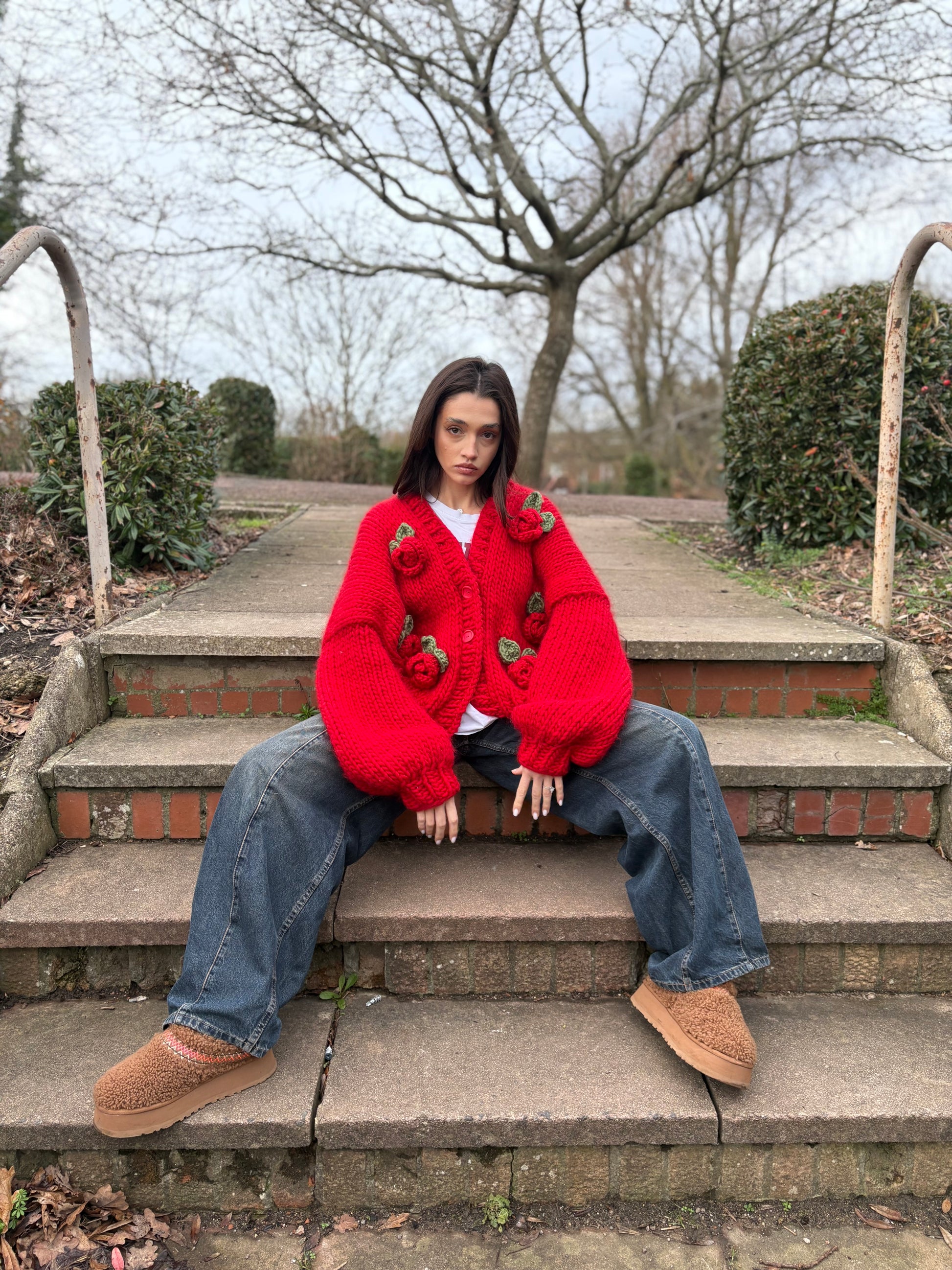 The Call Me Rose – Rose Garden Cardigan is a romantic handmade knit designed to blend comfort with artistic detail. Carefully hand-knitted using premium merino wool, this piece features delicate 3D rose appliqués that add texture, femininity, and a distinctive signature look.