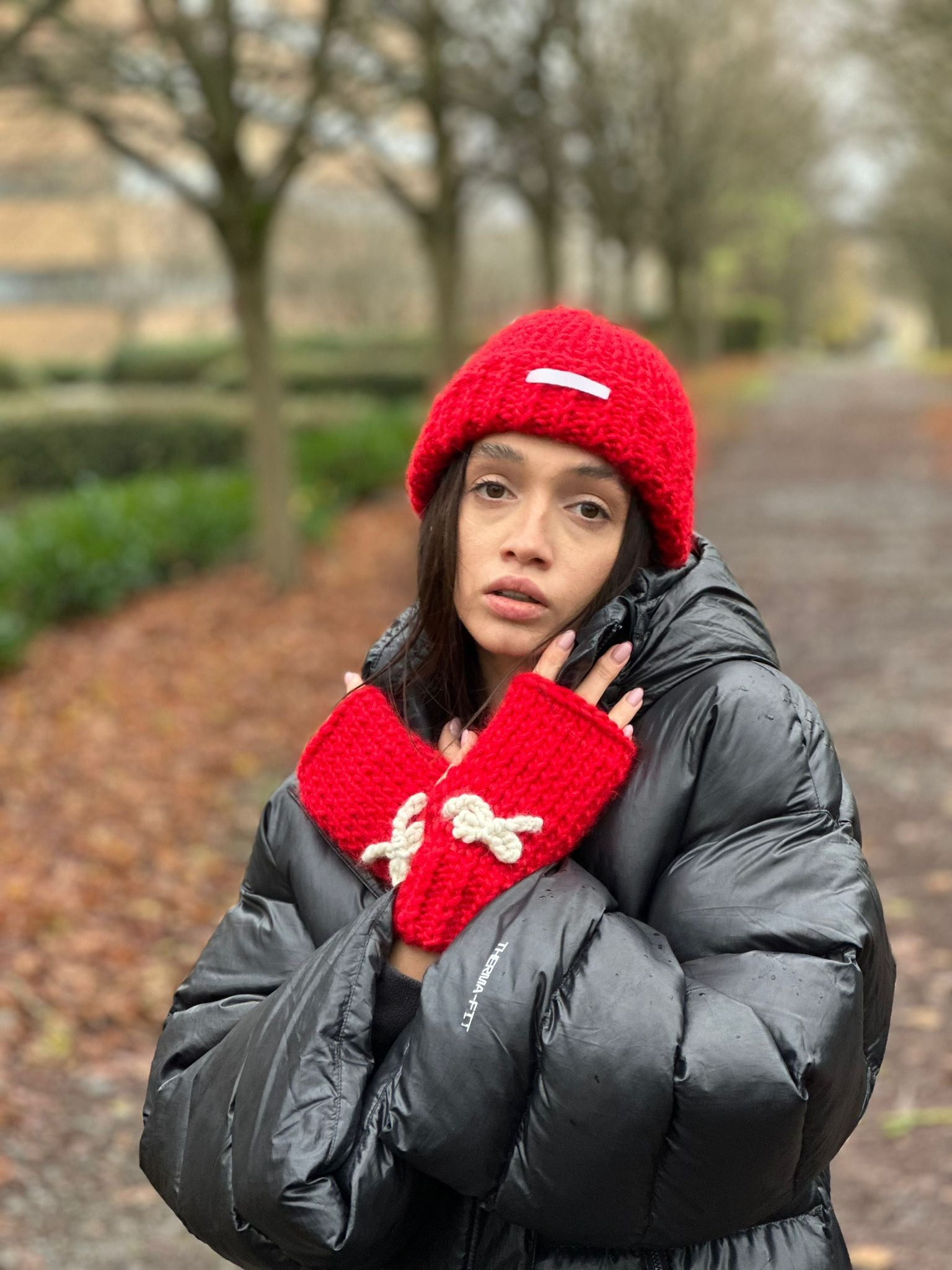Knitted Wool Gloves- RED